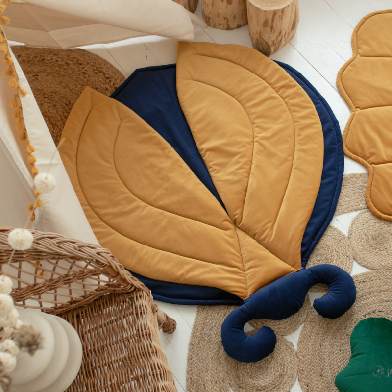 Honey and navy blue beetle-shaped mat, dimensions: 110 × 110 cm
